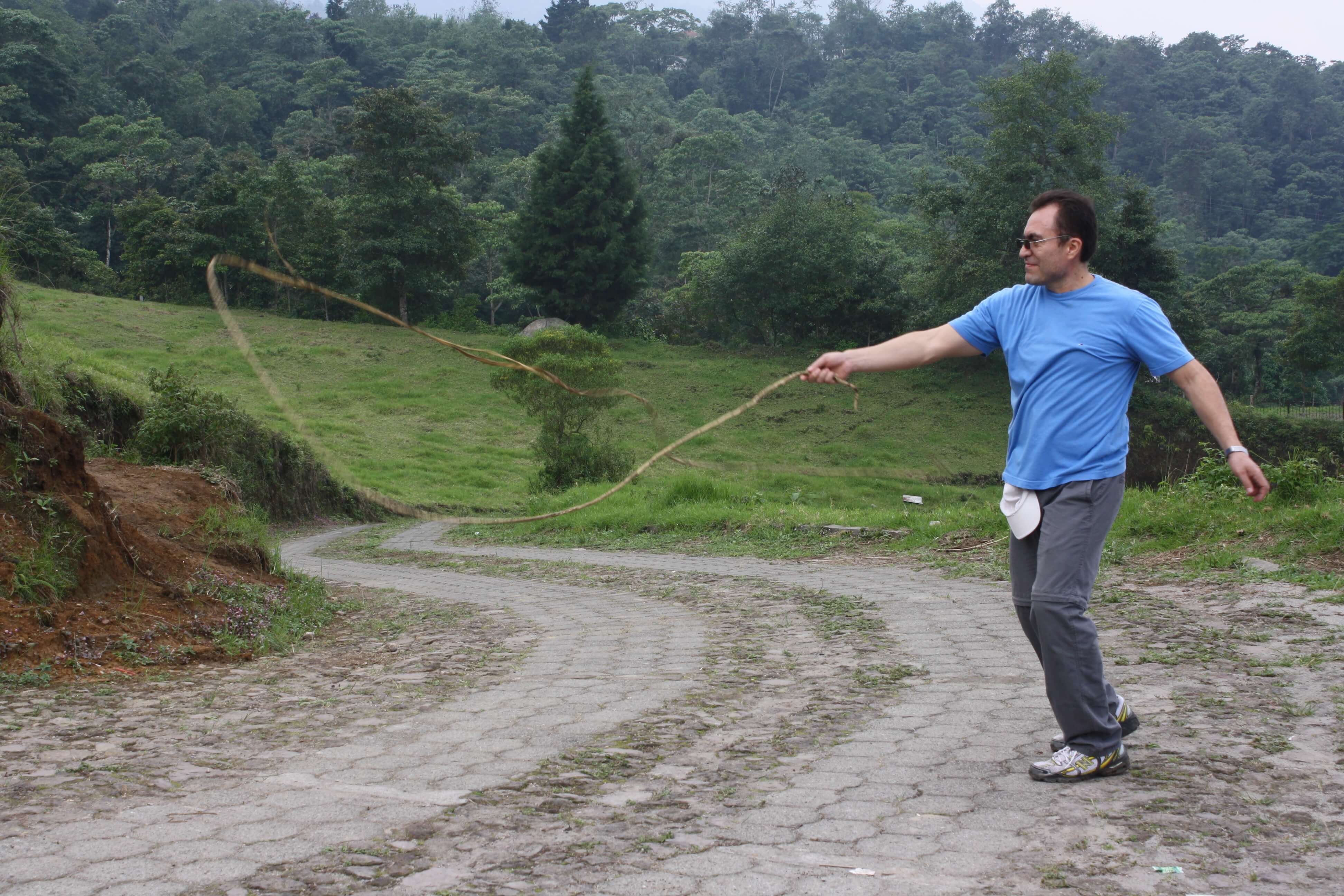 Un poco de diversión con una liana que había caído de un árbol